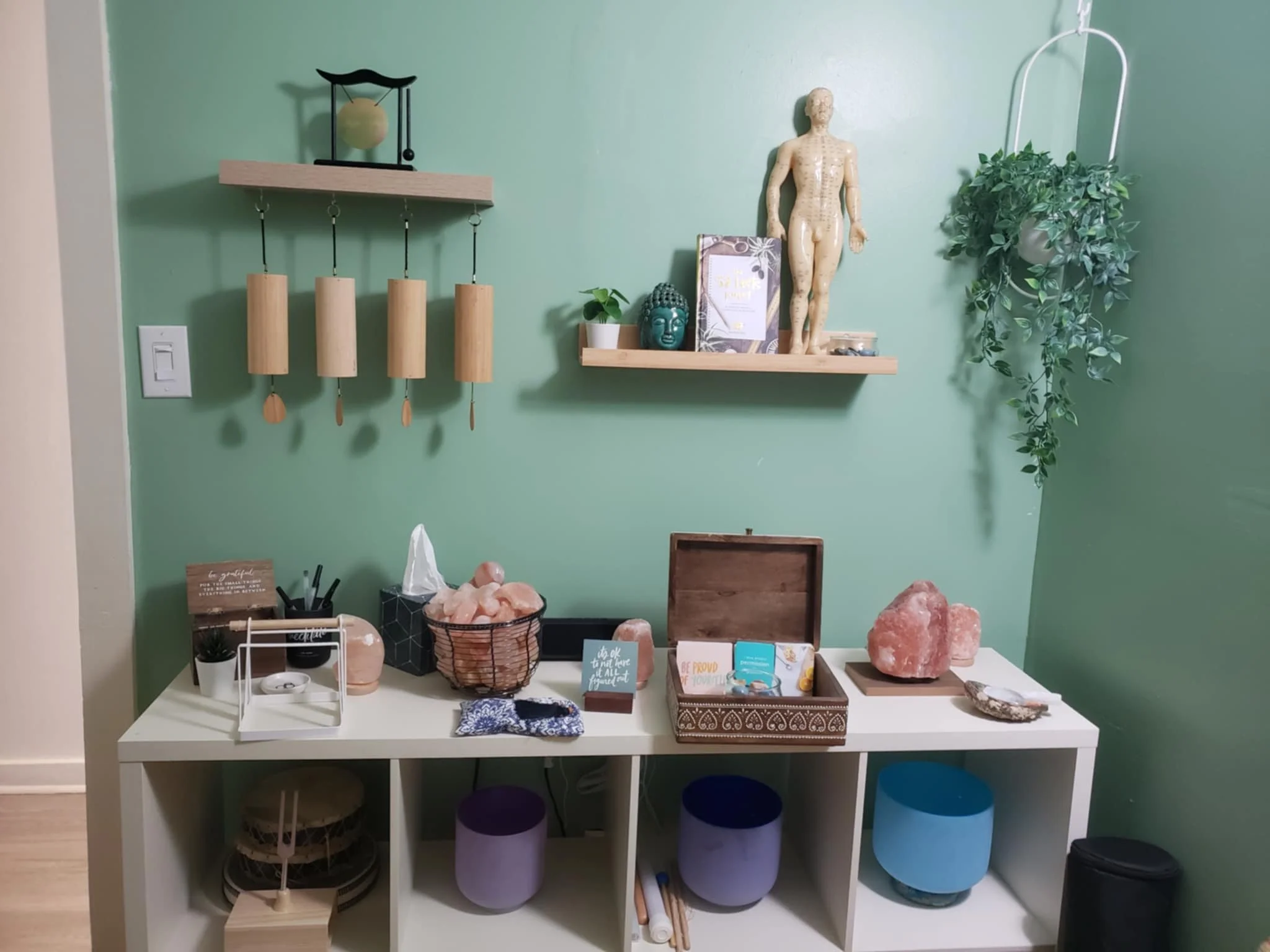 I use the ocean drum, koshi chimes, aroma therapy, total sound immersion, on a very comfortable bed Blankets and Eye Pillows provided.